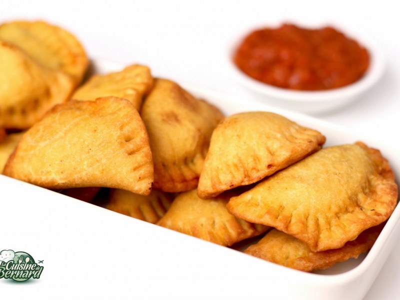 Les beignets sont accompagnés d'une sauce oignons aux épices